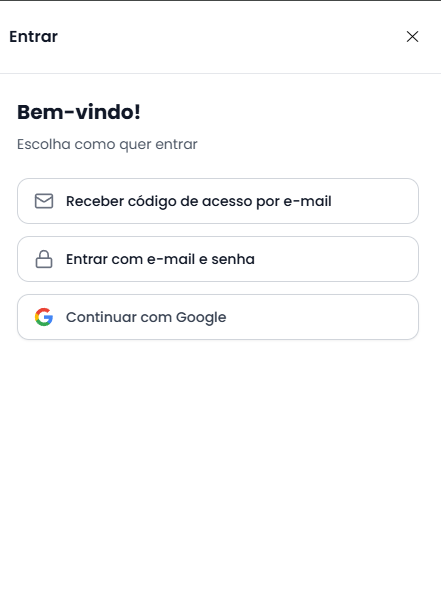 1) Acessar a área de login 2) Entrar na conta Na tela Entrar, faça uma das opções abaixo: Opção A — Entrar com Google Opção