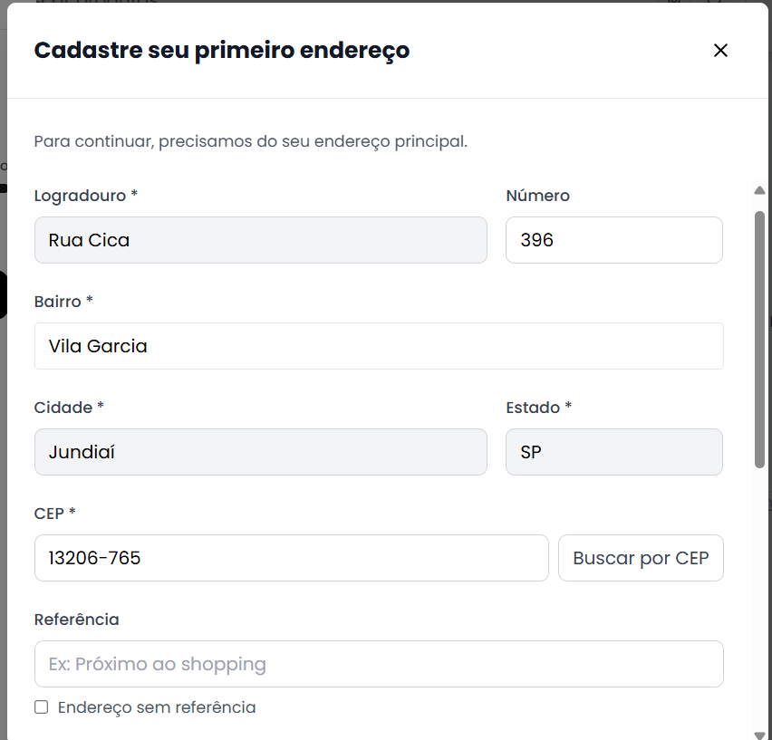 1- Ao terminar de preencher as informações de login irá abrir uma aba solicitando o endereço.