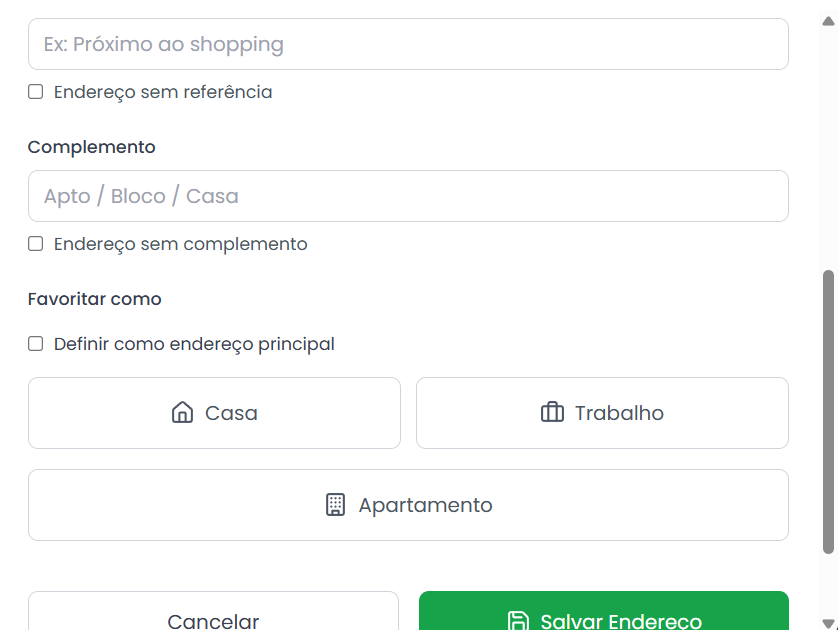 2- Após conferir os dados prenncha os campos de descrição e clique no botão verde “Salvar endereço”.