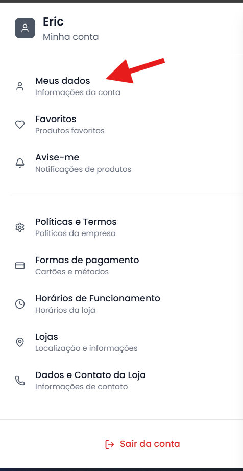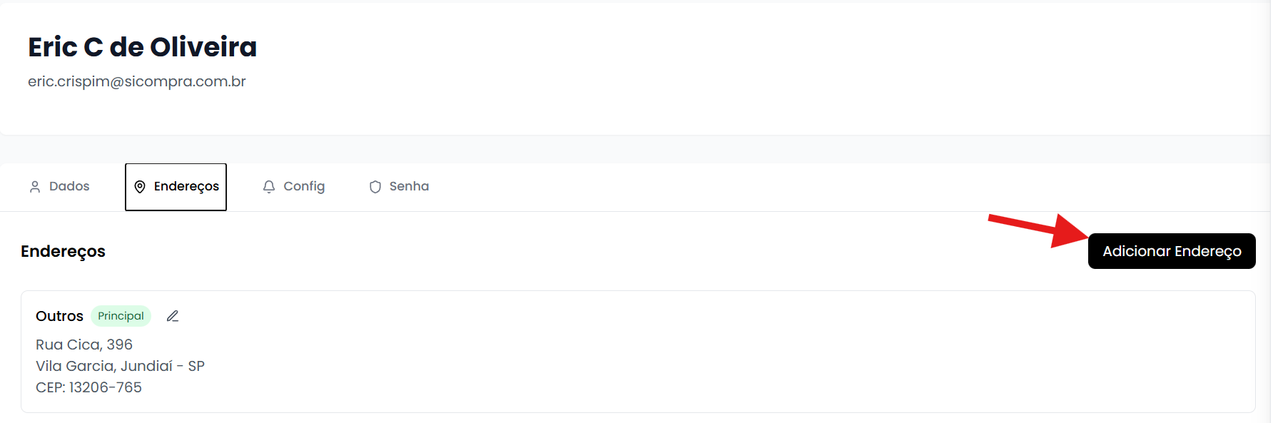 3- Para adicionar um novo endereço de entrega clique no seu nome no canto superior direito