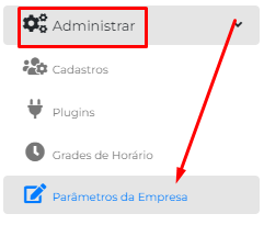 3- Clique na seção “Configuração” clique na sessão “Administrar” e clique no botão “Parâmetros da Empresa”.