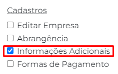 Para realizar esse procedimento é necessário que o usuário tenha acesso “Cadastros>Informações Adicionais”.