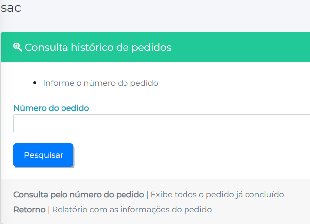 • Por número: Forma mais direta e rápida. Digite o código do pedido e clique em Pesquisar.