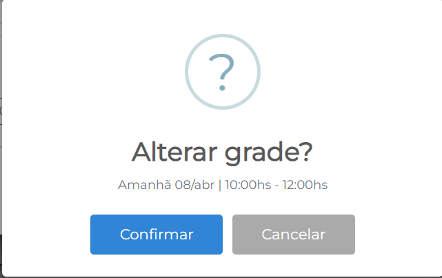 Após selecionar o novo horário, uma mensagem de confirmação aparecerá: “Alterar grade?”.