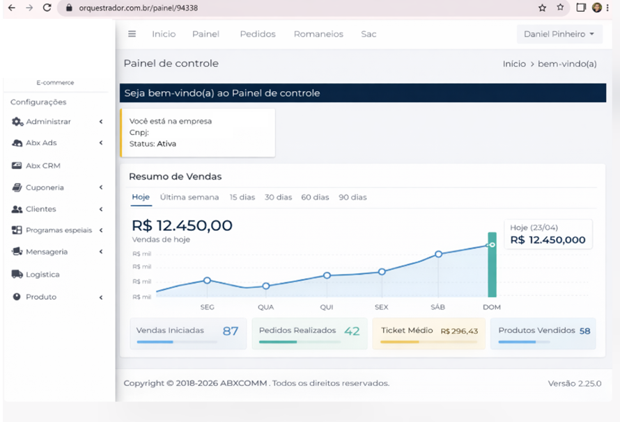 Com esse dashboard, os gestores terão acesso a indicadores essenciais de forma centralizada, tornando o acompanhamento das vendas mais prático, visual e estratégico dentro do Orquestrador.