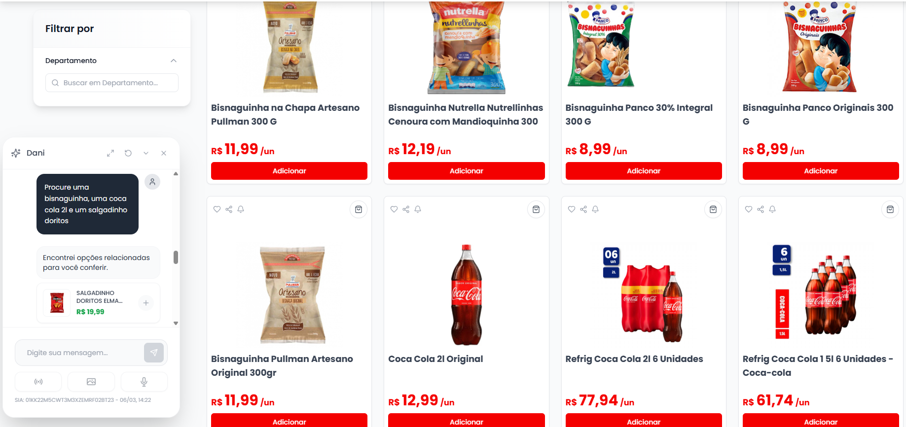 “Adicionar leite, pão e café ao carrinho”, e a IA realizará a busca dos produtos e montará o carrinho automaticamente.