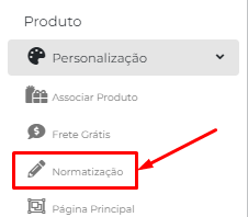 3 – No lado superior esquerdo, siga até “Produtos > Personalização > Normatização;”