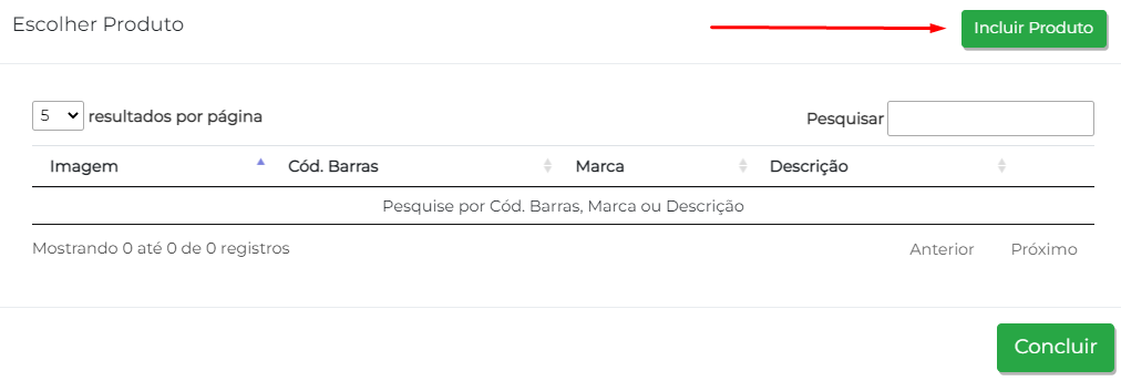5 – Será aberta uma nova janela. Clique no botão “Incluir Produto”;