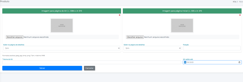 Kit válido até: Defina uma data de validade para a exibição e venda do kit, se aplicável.