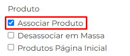 Para realizar esse procedimento é necessário que o usuário tenha acesso em “Produtos > Associar produto”.