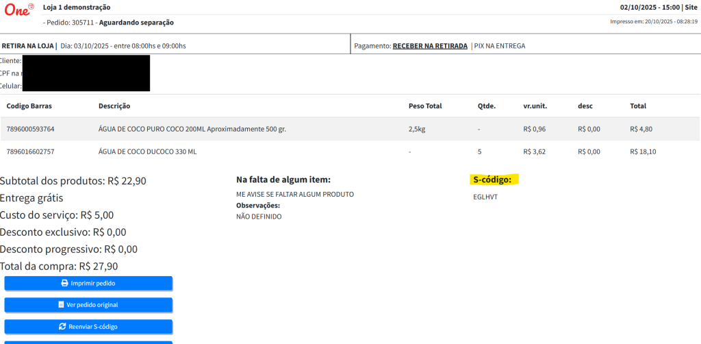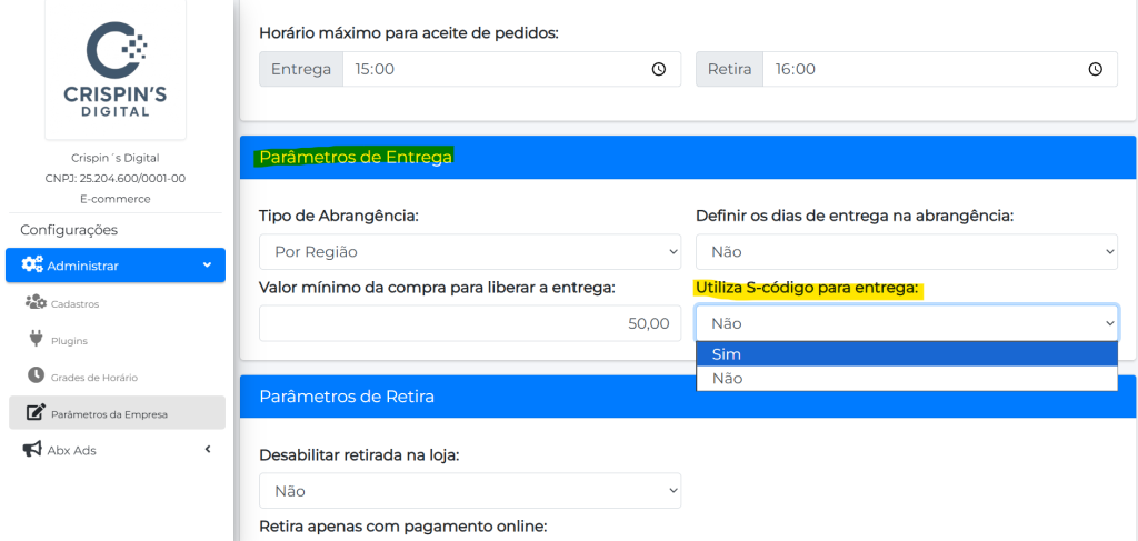 Role até o final da página e clique em Salvar. A partir deste momento, todos os novos pedidos gerados exigirão a confirmação via S-code no ato da entrega.