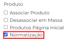 Para realizar esse procedimento é necessário que o usuário tenha acesso “Produtos>Normatização”