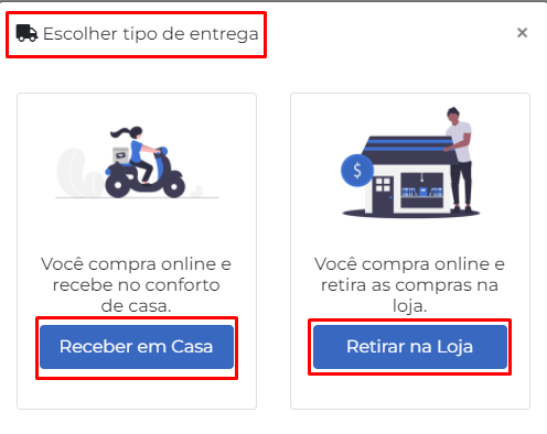 5- Selecione a forma de entrega, se será “Receber em Casa” ou “Retirar na Loja”.