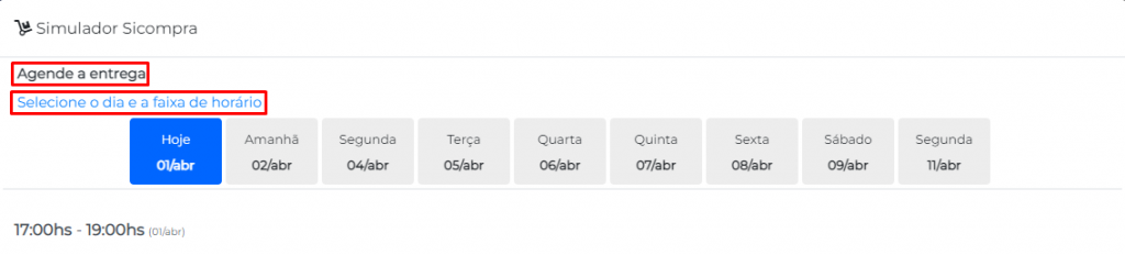 5.1- Selecionado a opção de “Receber em Casa” ou “Retirar na Loja”, cairá na seção para agendar a entrega ou a retira.