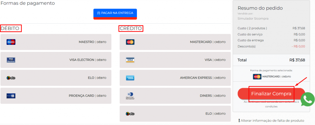 9- Clique no botão vermelho “Finalizar Compra” para finalizar a compra.
