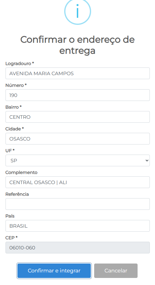 Uma nova tela será exibida, pedindo para que você confirme ou ajuste o endereço de entrega do cliente que foi importado do PDV.