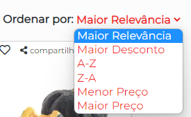 3.1- Clique no botão “Maior Relevância” para selecionar o modo que irá ordenar os produtos em uma loja on-line.