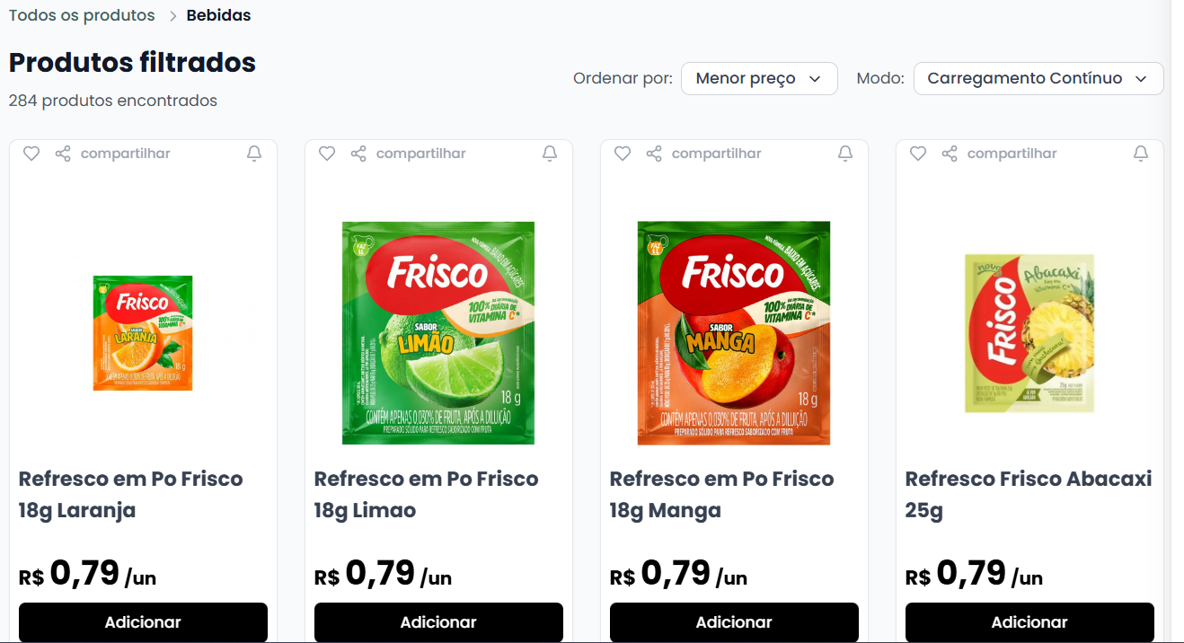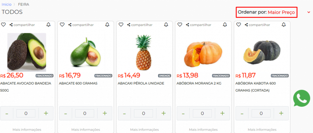 4- Após selecionar, ficará disponível os produtos que selecionou o modo que ordenou.