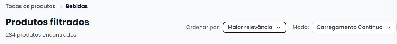 3- Para ordenar produtos, basta navegar até a parte superior da tela onde ficará exibido “Ordenar por:”