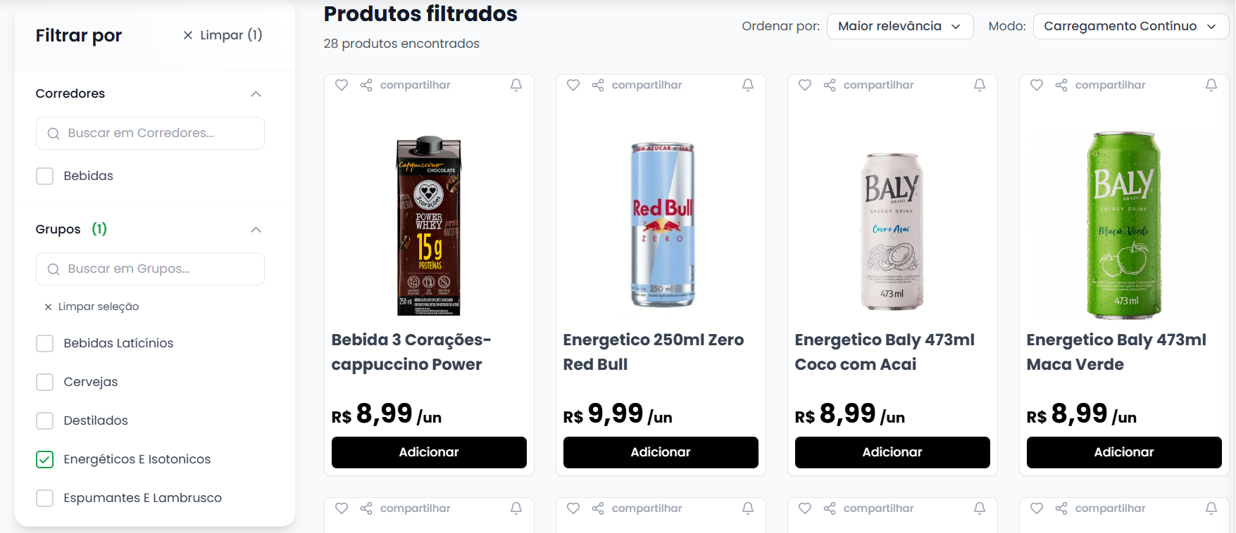 3- Depois de selecionar a categoria, será exibido os produtos dentro daquela categoria selecionada.