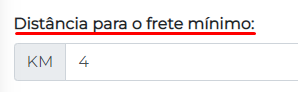 8.1- Informe a distância em kilomentros para “Valor do Frete Mínimo”.