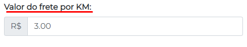 8.5- Digite o valor ou percentual a ser cobrado no campo Valor do frete por KM;