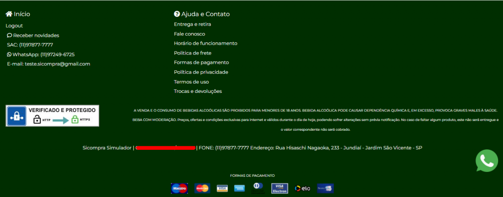 2.1- No rodapé da loja on-line se encontra algumas informações necessárias e importantes, como: