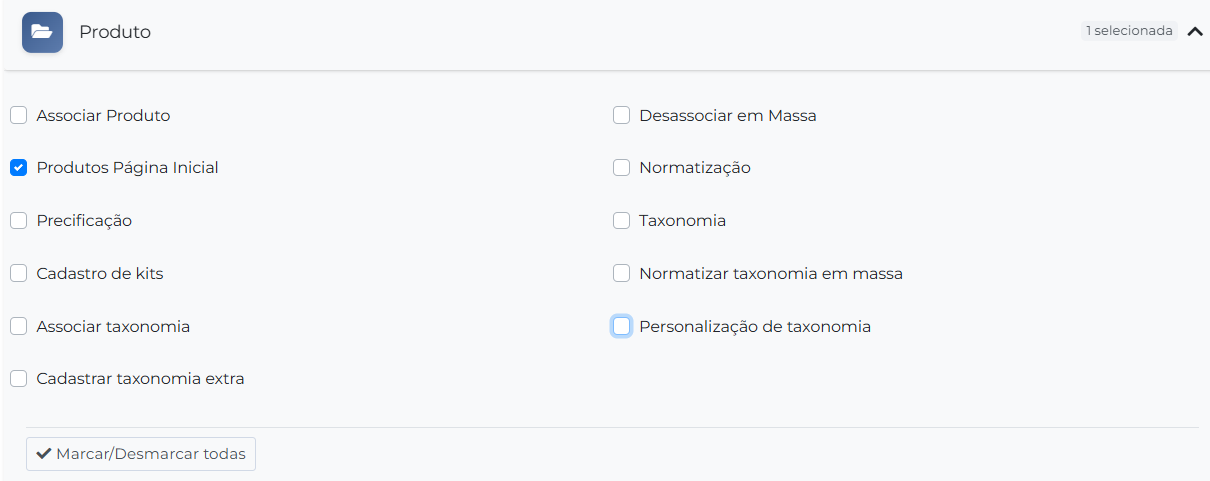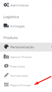 Para realizar o processo, o usuário precisa ter acesso dentro de produtos a opção Produtos Página principal.