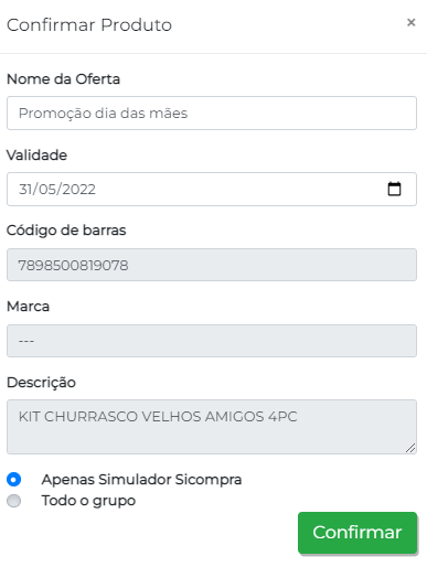 Agora, em confirmação do produto você vai dar um nome para a oferta, por exemplo, Promoção Dia Das Mães