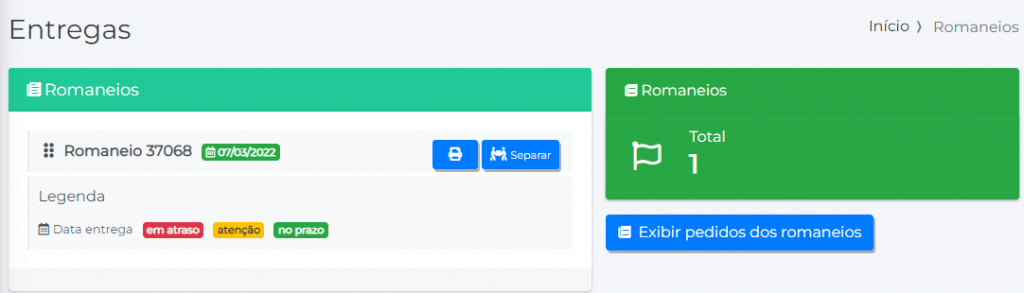 6- Depois de acessado, irá aparecer a lista de todos os romaneios.