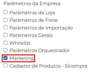 Para realizar esse procedimento é necessário que o usuário tenha acesso Parâmetros da Empresa>Marketing.