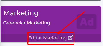 3- Após entrar, clique em “Marketing da Empresa>Editar Marketing”.