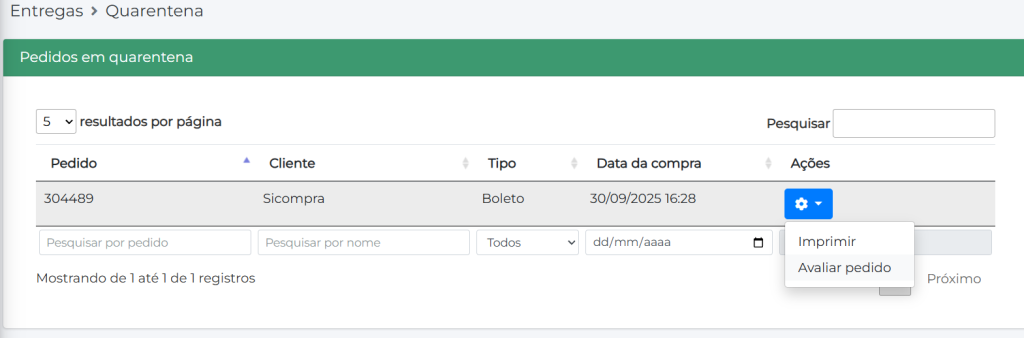 É necessário que seu perfil de usuário tenha permissão de acesso aos módulos “Quarentena> Aprovar de Pedidos”.