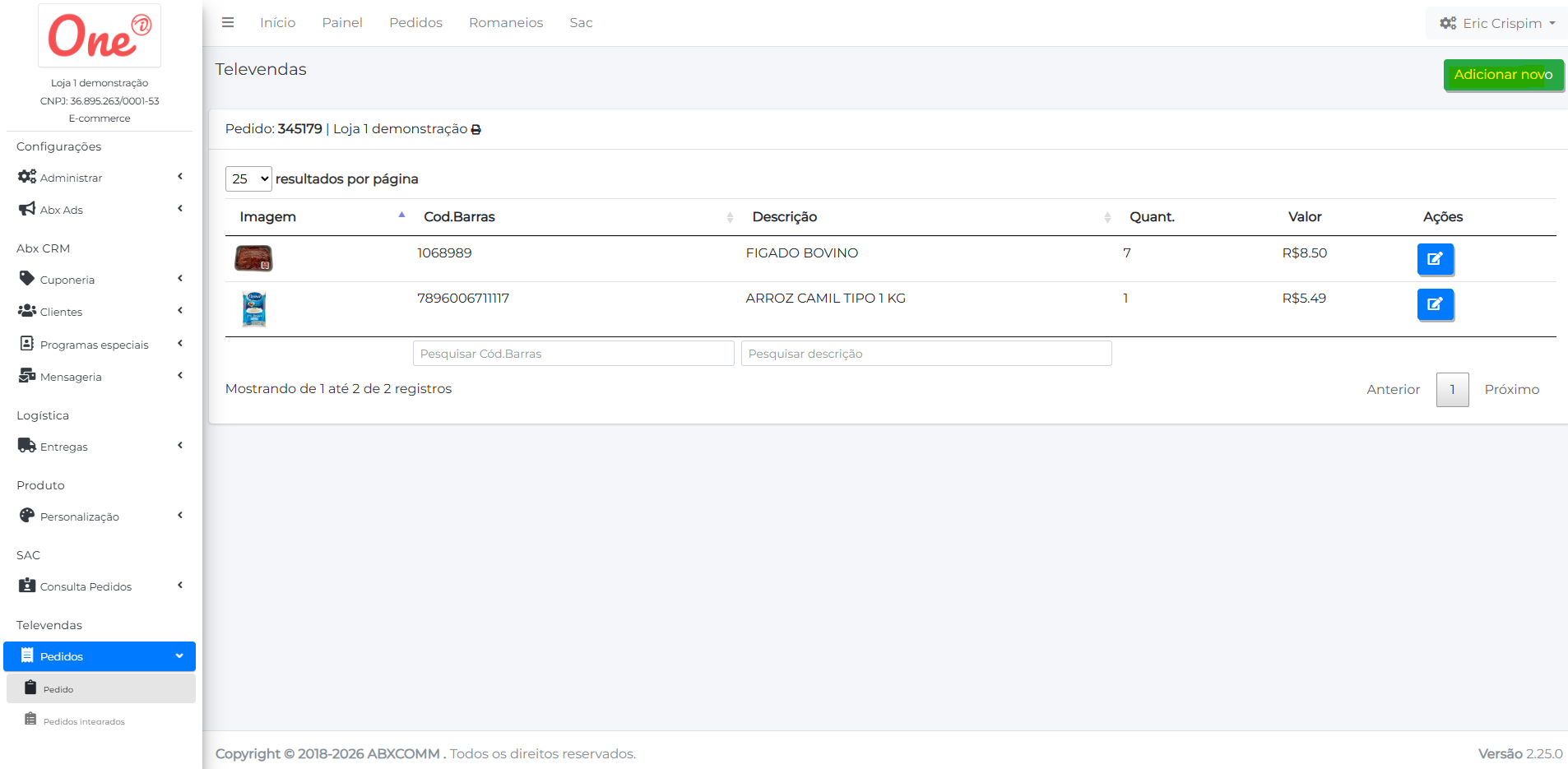 1- Clique na sessão Televendas> Pedidos> Pedido