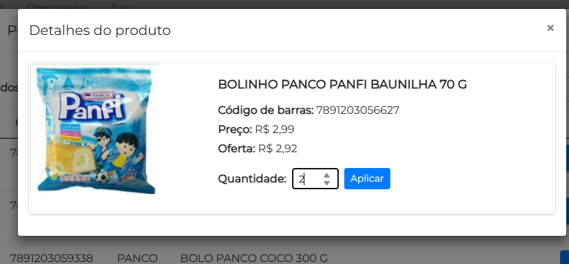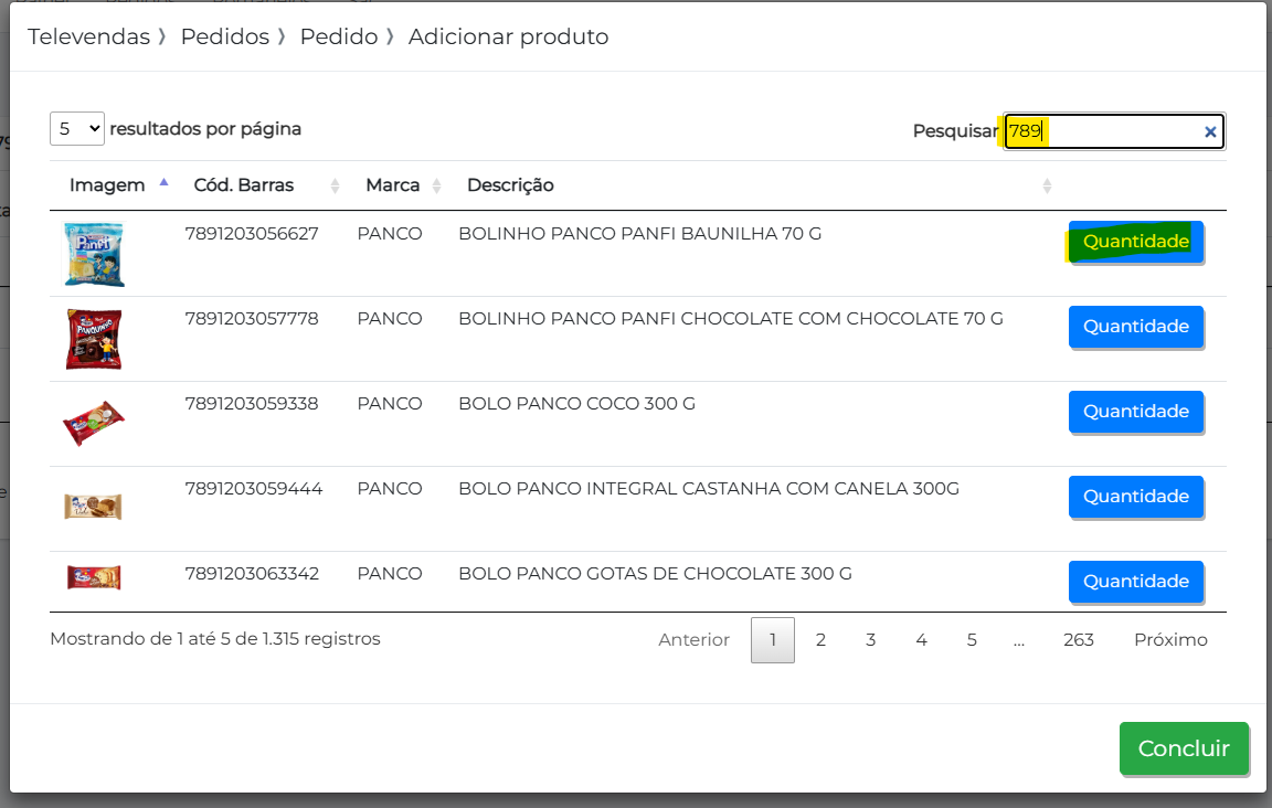 4- Pesquise o item desejado e clique em quantidade