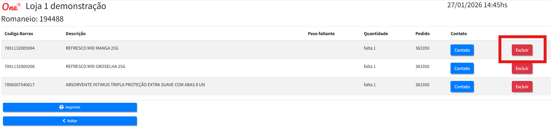Com isso voce excluiu o item em falta do pedido, para adicionar um novo item siga esses passos: