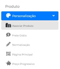 3 – Acesse Produto > Personalização e clique no botão Associar Produto;